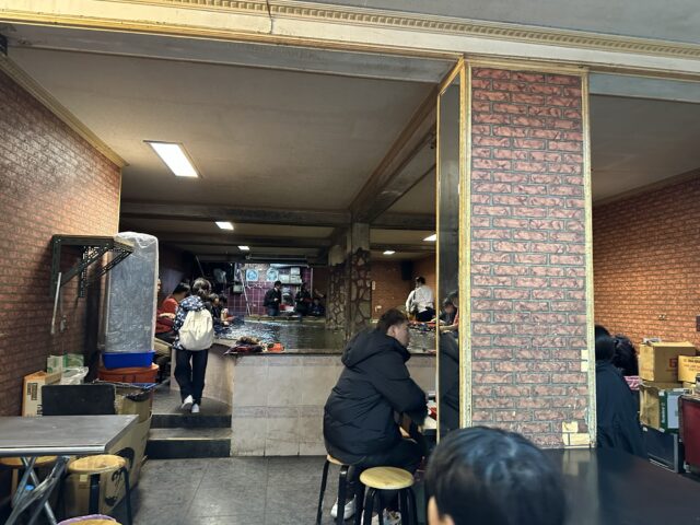 男女兼用で、一か所しかなく、しかも和式… なぜか地面はびしょ濡れで、わたしは汚いトイレが苦手なので一目見て断念。笑