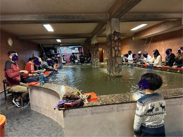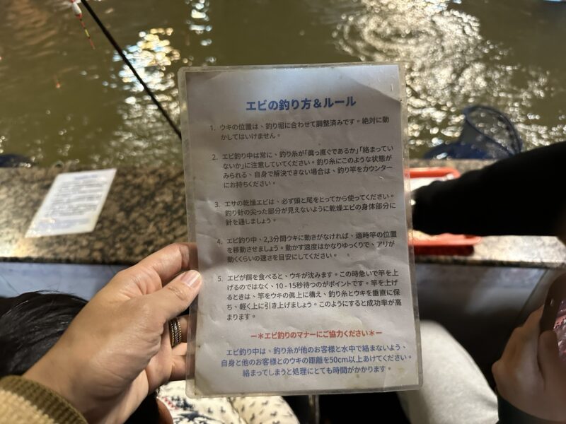 mapの情報には「16時開店」と記載されていたのですが、16時に到着した時にはすでにエビ釣りを楽しむお客さんでにぎわっていました。記載情報が誤っているのか、日によって早い時間から営業しているのか謎です。