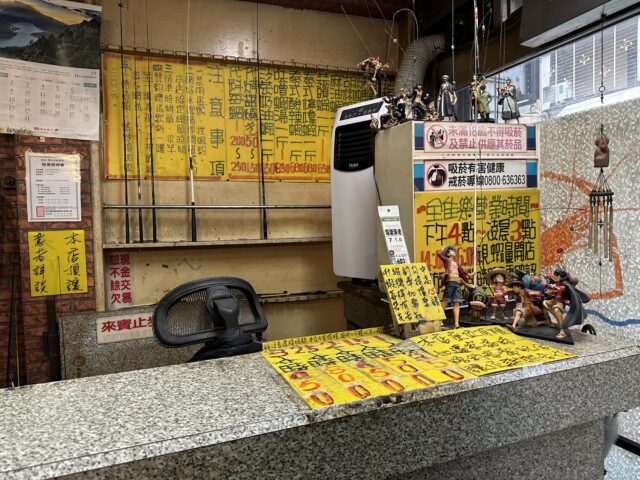 たぶんカウンターに記載されているのが料金表で、1時間350台湾ドル、1.5時間500台湾ドル、2時間650台湾ドル…と30分ごとに150台湾ドル加算されます。長いほどお得になる料金設定ではありませんでした。
