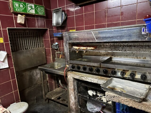 お店の奥に、エビを焼くためのコンロとお手洗いがありました。