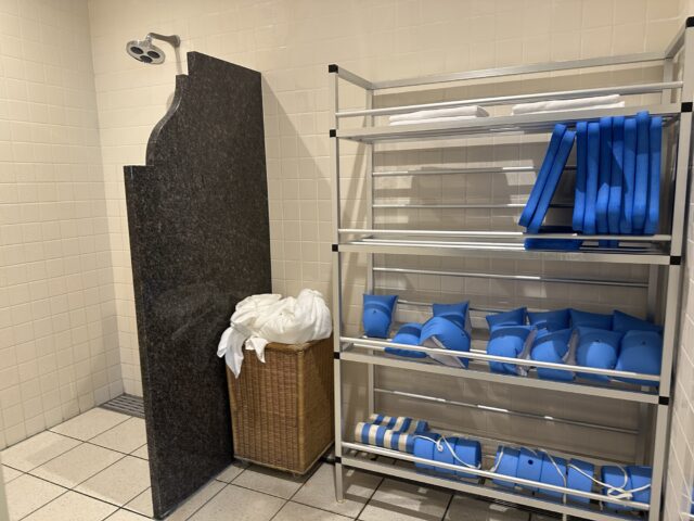 シャワーブースの隣に、自由に使えるビート板や浮き具があり、お借りしました。