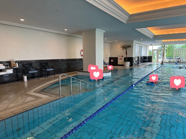 リッツカールトン大阪の屋内プールは、ラグジュアリーホテルでは珍しい子連れもウェルカムなプールでした。