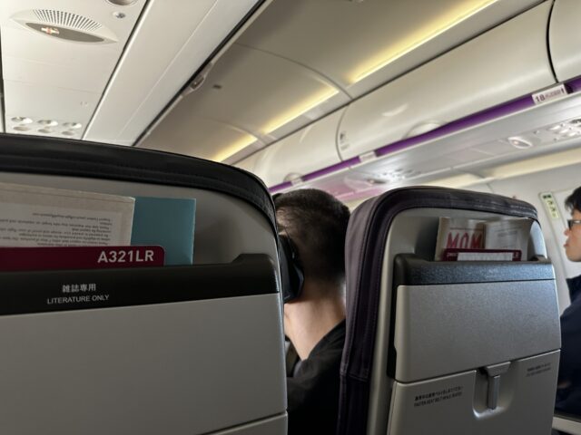 座席はシンプルで、個人用画面なし。