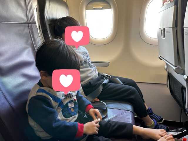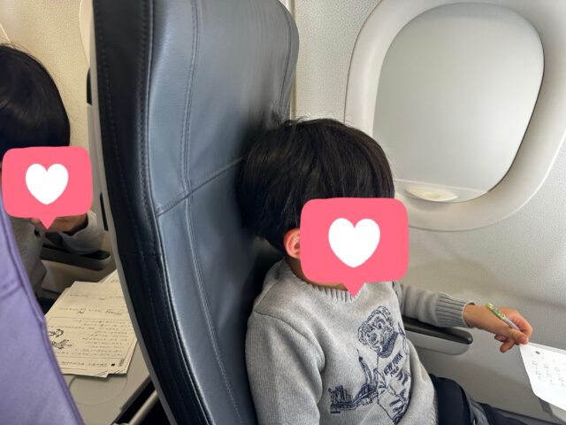 2歳の末っ子は行きと同じく泣いて自分の座席に着席できず、帰りも膝の上で過ごしました。