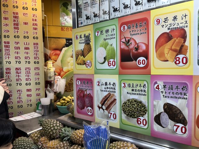 わたしは屋台フードが苦手なので、フレッシュフルーツジュースのお店でマンゴージュースを飲みました。