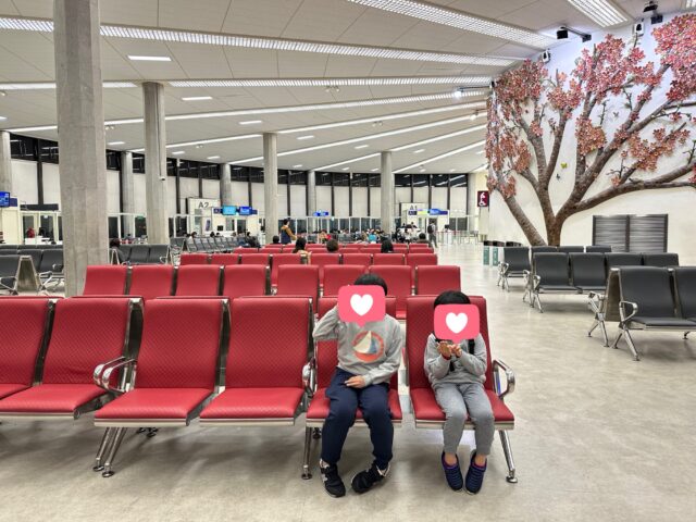 「nana’s greentea」で朝食?を食べたり、ちょっとしたキッズスペースで遊ばせたり、免税店をぶらぶら見ながら過ごしました。