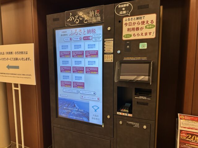 わたしたちは事前にふるさと納税し、送られてきた紙のクーポンを持参しましたが、ホテル内の自販機でも寄付&発券可能となっていました。