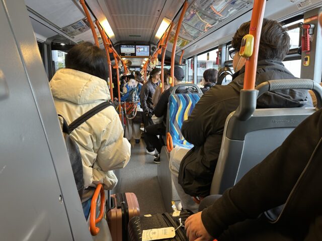 狭いバスにスーツケースなど手荷物を持って利用する人が大半なので、子連れでの利用は結構大変でした。