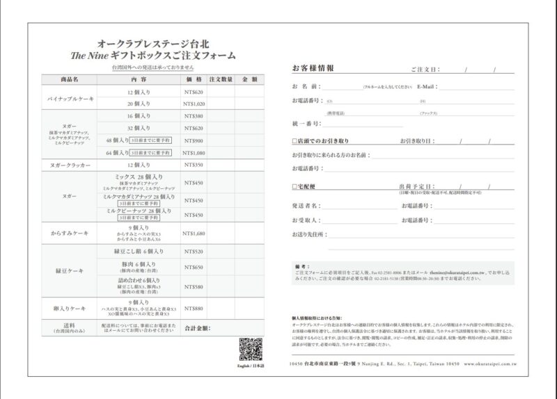 公式サイトにオーダーフォームがあり、店頭受取または台湾国内住所への配送のみ可能(台湾国外への配送は不可)
