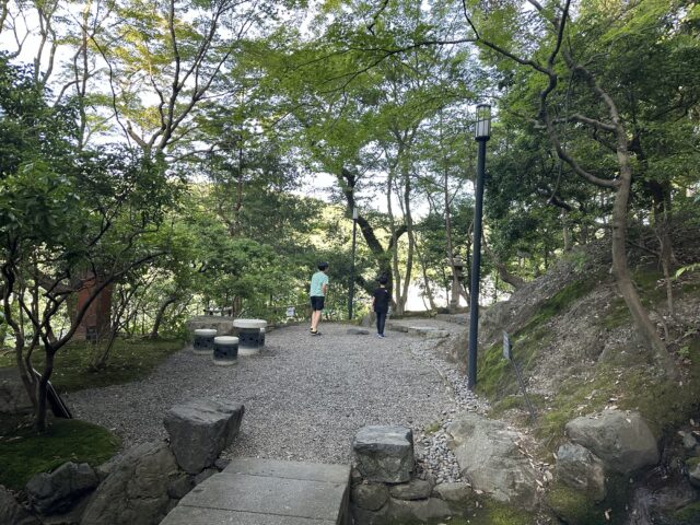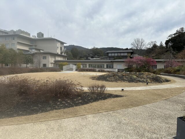市内中心部の喧騒から少し離れた立地で、敷地はとても広く、庭園や散策路があり、京都らしい落ち着いた雰囲気を感じられるのが大きな魅力。